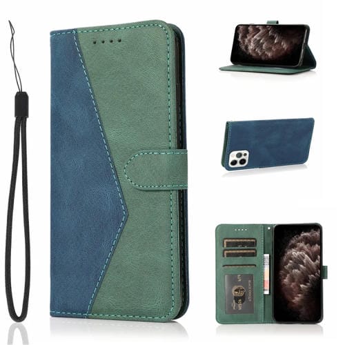 Estuche para Teléfono iPhone 13 Pro Max Cuero con Costuras de Dos Colores (Azul Verde)
