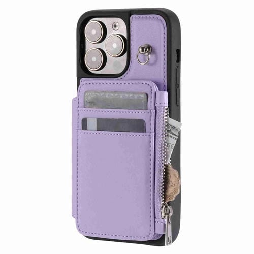 Estuche para Teléfono iPhone 13 Pro Max Rfid con Ranuras para Tarjetas con Cremallera (Púrpura)