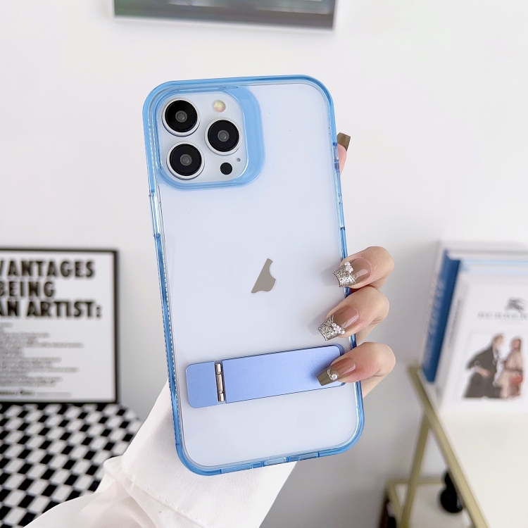 Funda para teléfono iPhone 13 Pro Max Transparente con soporte alto (Azul)