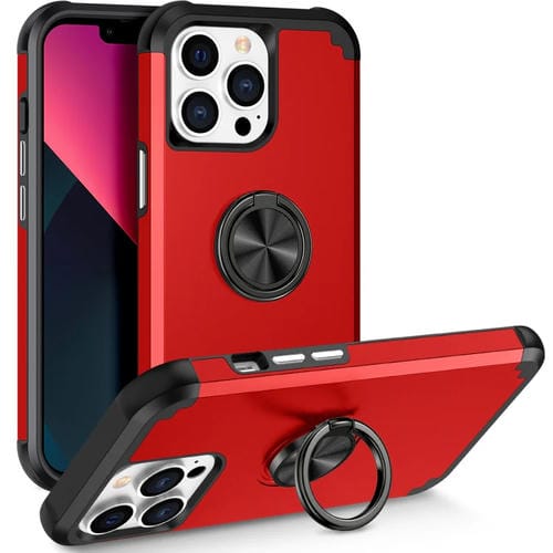 Funda Magnética para Teléfono iPhone 13 Pro Max L2 con Soporte de Anillo Giratorio (Rojo)