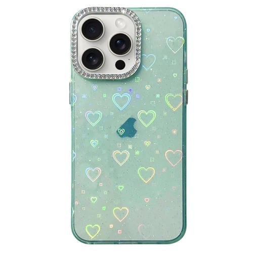 Funda para iPhone 13 Pro Max Love Pattern Diamond Lens Frame Imd Acrílico (Verde)