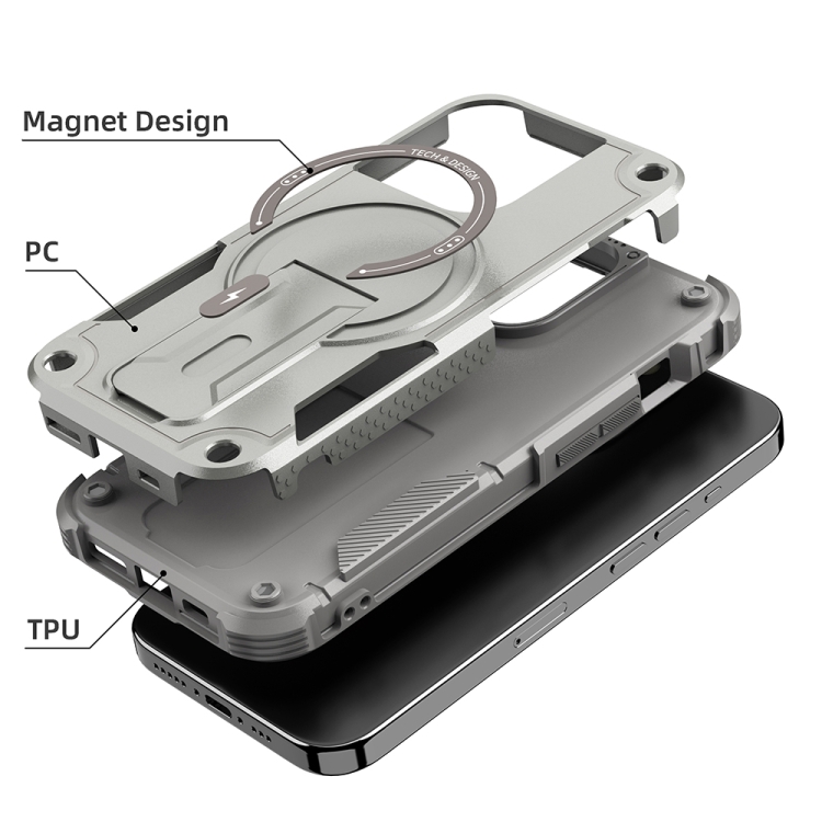 Funda para Teléfono iPhone 13 Pro Max Magsafe Holder Armor PC Hybrid TPU (Gris)