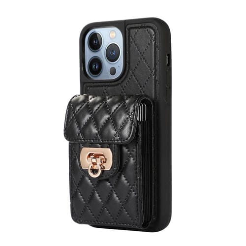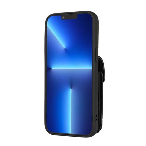 Funda para teléfono iPhone 13 Pro Max ranura para tarjeta cuero (Negro)