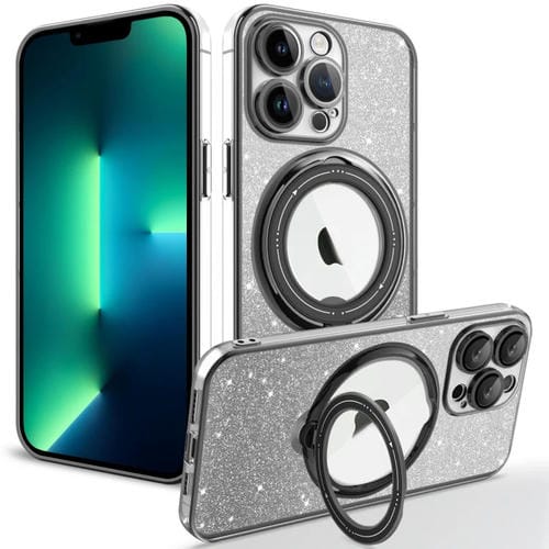 Estuche para teléfono iPhone 13 Pro Max Rotation Magsafe Holder TPU con brillo degradado (Negro)