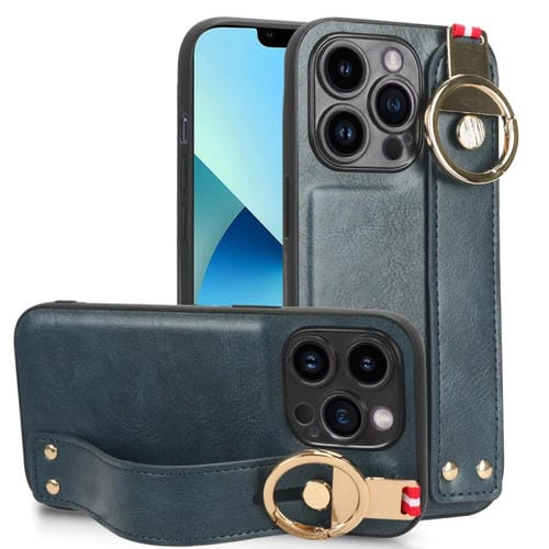 Funda para iPhone 13 Pro Max Wristband Leather Back Phone Case (Azul)