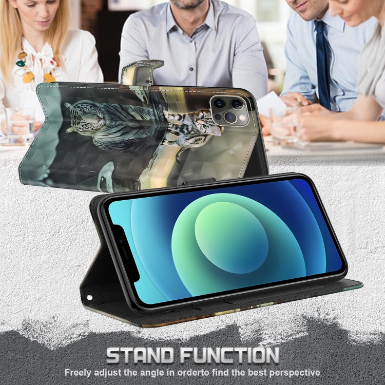 Funda para iPhone 13 Pro TPU + Cuero PU con Soporte y Ranuras para Tarjetas (Tigre de Gato)