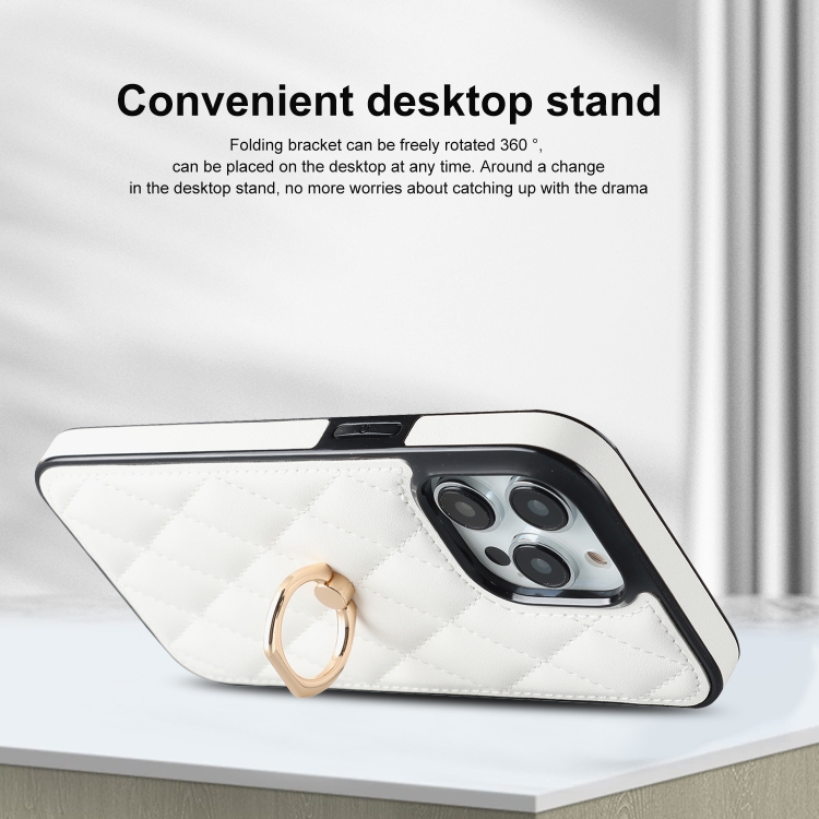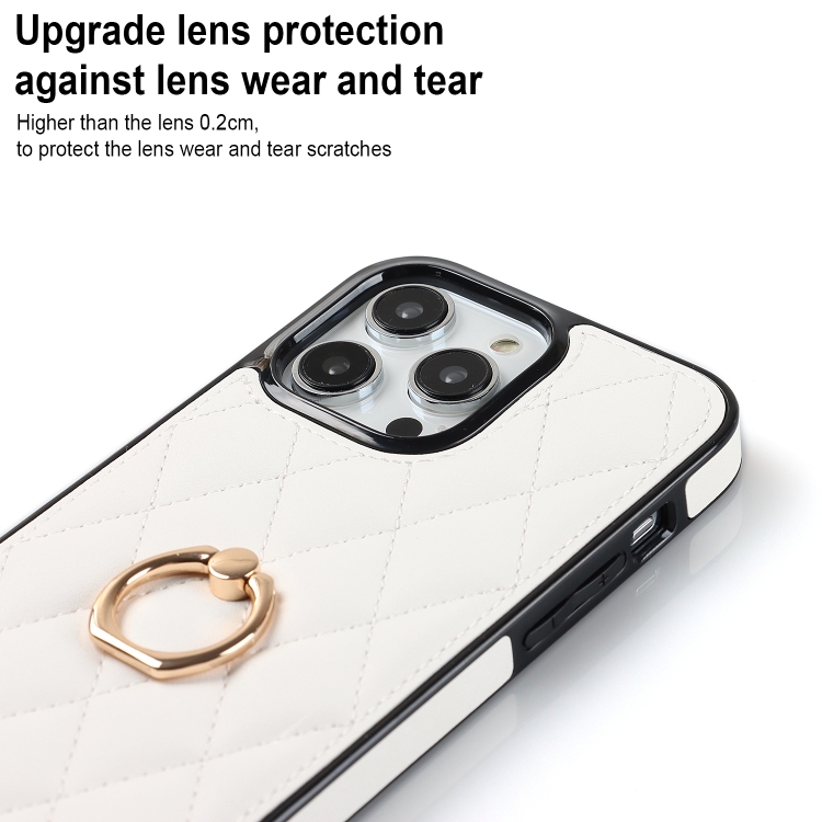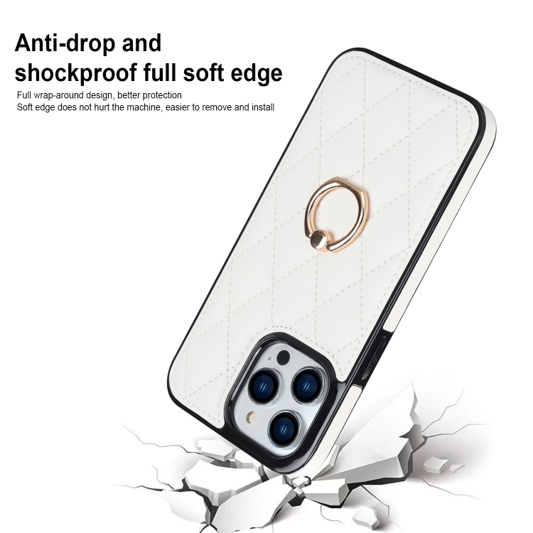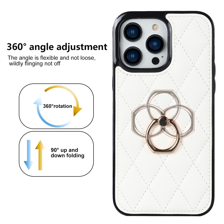 Funda para Teléfono Rhombic Pu Cuero para iPhone 13 Pro con Soporte para Anillo (Blanco)