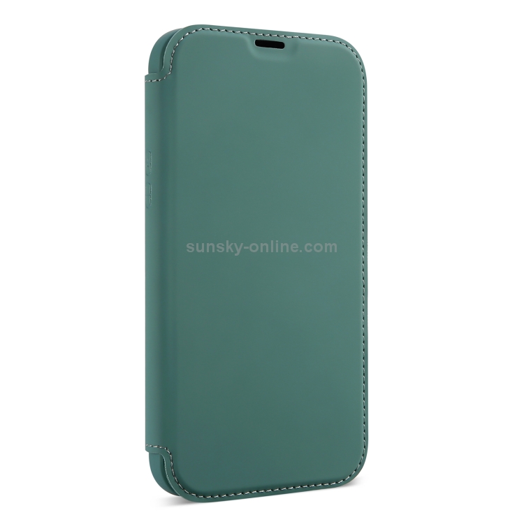 Funda para iPhone 13 Pro Skin Feel Cuero de Pu con Tapa Horizontal Soporte y Ranura para Tarjeta (Verde Oscuro)
