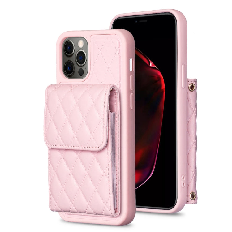 Funda para iPhone 13 Pro Vertical Wallet Rhombic Leather Case (Rosa)