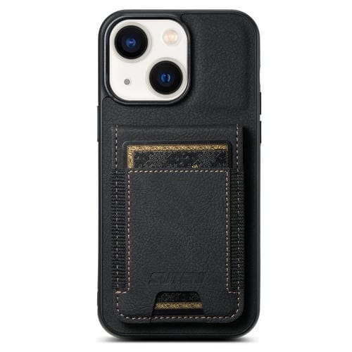 Funda para Teléfono Suteni H03 para iPhone 13 con Soporte para Tarjeta Cuero Litchi (Negro)