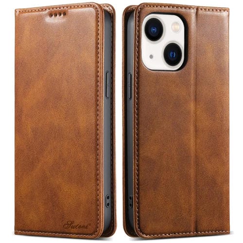 Funda para iPhone 13 Suteni J02 Cuero con Billetera Cera de Aceite (Marrón)