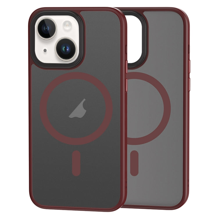 Funda para iPhone 14 Brilliant Series Magsafe Micro-Frost Anti-Huella Digital PC (Rojo Púrpura)
