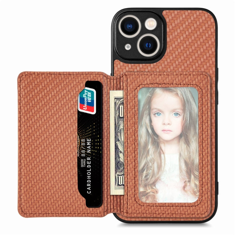 Caja de Teléfono para iPhone 14 con Bolsa de Tarjeta Magnética de Fibra de Carbono (Marrón)