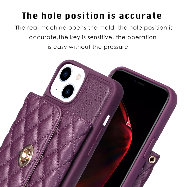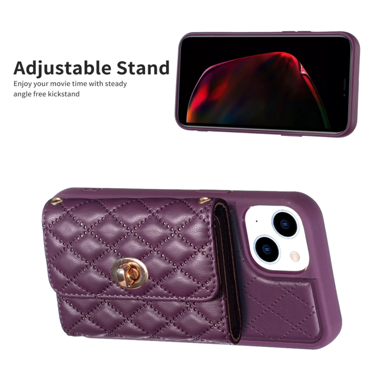 Caja de Teléfono de Cuero Rómbica para iPhone 14 Billetera con Hebilla de Metal Horizontal (Púrpura Oscuro)