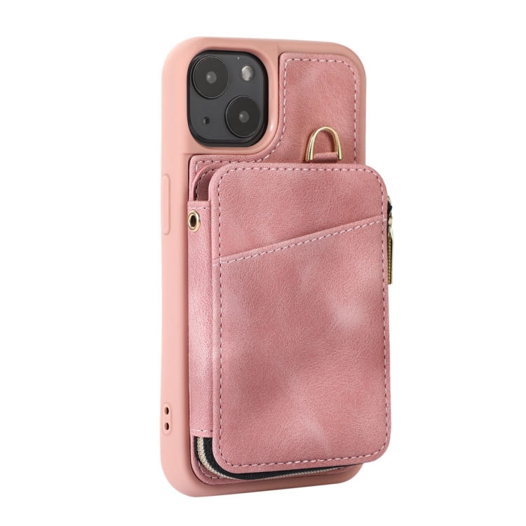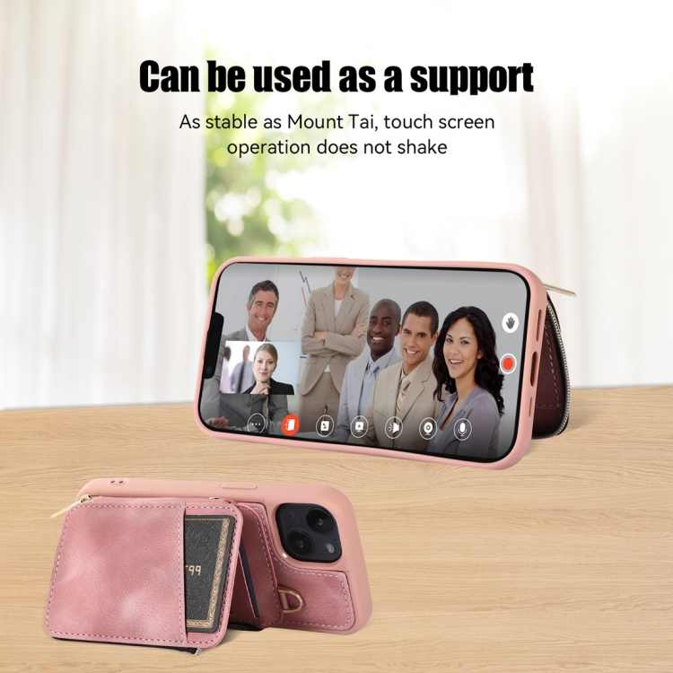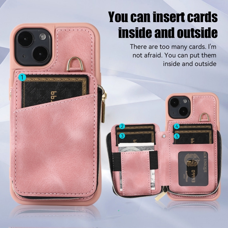 Bolsa de Tarjeta con Cremallera para iPhone 14 Contraportada Caja del Teléfono (Rosa)