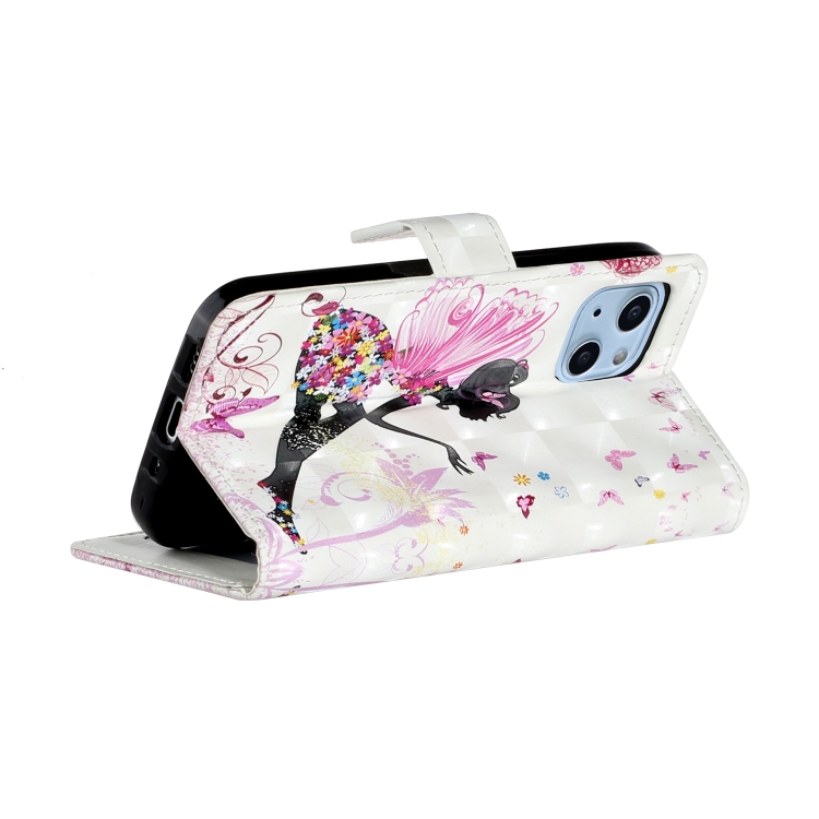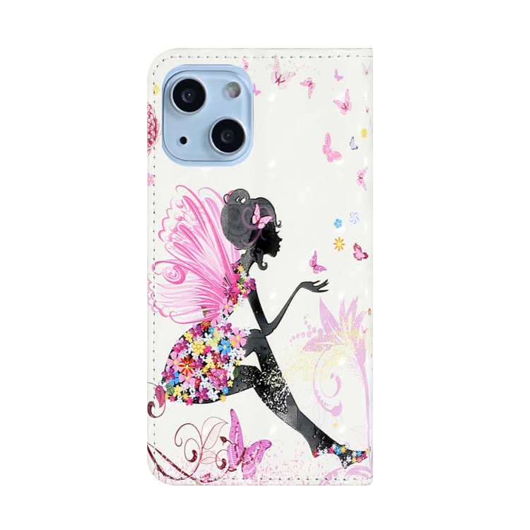 Estuche para Teléfono iPhone 14 Cuero Dibujo 3D Hada de Las Flores