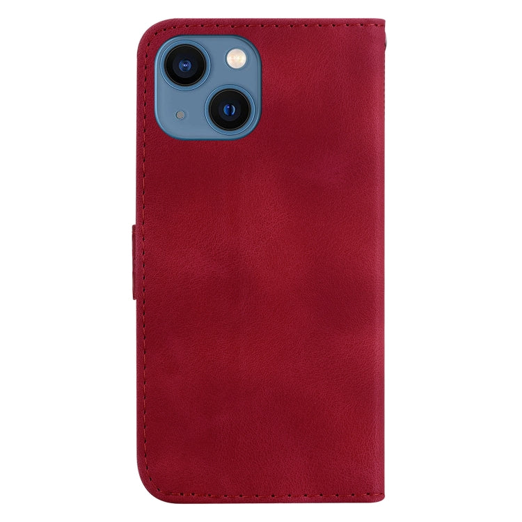 Estuche para Teléfono iPhone 14 Cuero En Relieve En Forma de 7 (Rojo)