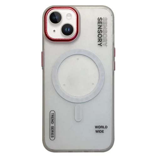 Estuche para Teléfono Magsafe iPhone 14 con Marco de Protección de Lente de Metal Esmerilado (Rojo)