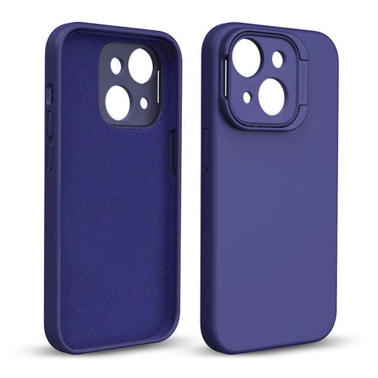 Funda de Teléfono para iPhone 14 con Soporte de Lente de Silicona Líquida (Púrpura Oscuro)