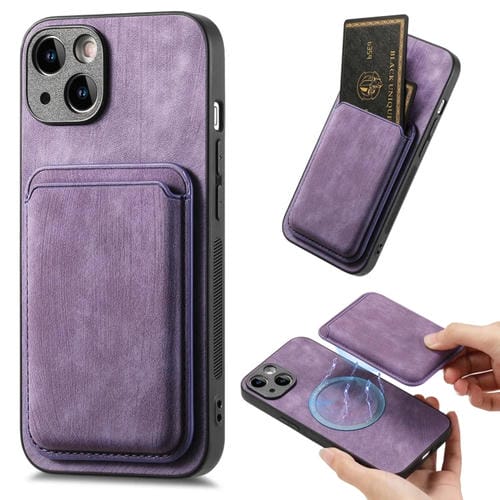Funda Magnética para Teléfono iPhone 14 con Bolso para Tarjetas Cuero Retro (Púrpura)