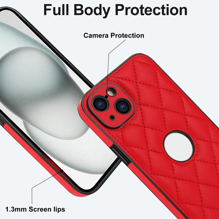 Funda para Teléfono iPhone 14 Contraportada de Cuero Rómbico (Rojo)