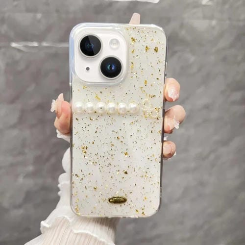 Funda para Teléfono TPU iPhone 14 con Lazo de Perlas y Lámina Dorada (Perla)