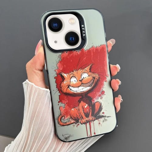 Funda para Teléfono iPhone 14 Imd Animal Graffiti TPU + PC Doble Cara (Gato Sonriente)