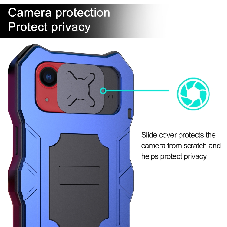 Funda para iPhone 14 Life Camshield Tri-Poof Metal con Soporte Impermeable (Azul)