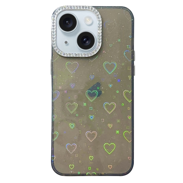 Funda para iPhone 14 Love Pattern Diamond Lens Frame Imd Acrílico (Negro)