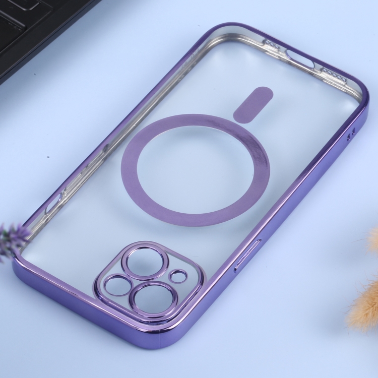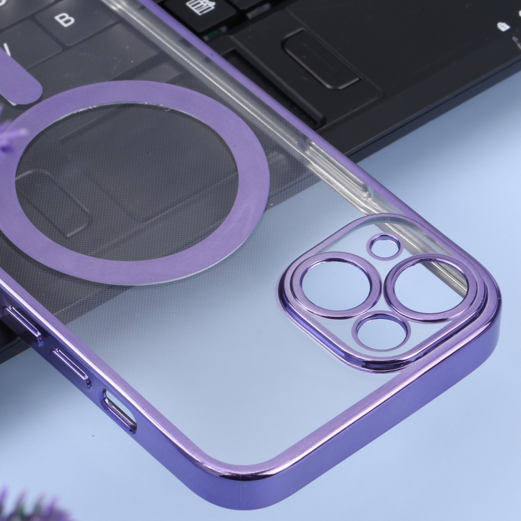 Funda para iPhone 14 Magsafe Galvanoplastia Straight TPU Phone Case (Púrpura)