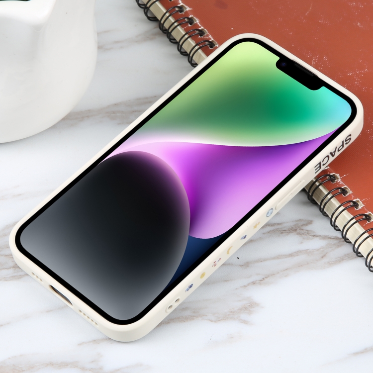 Funda de Teléfono iPhone 14 Patrón Astronauta Borde Recto Silicona (Blanco)