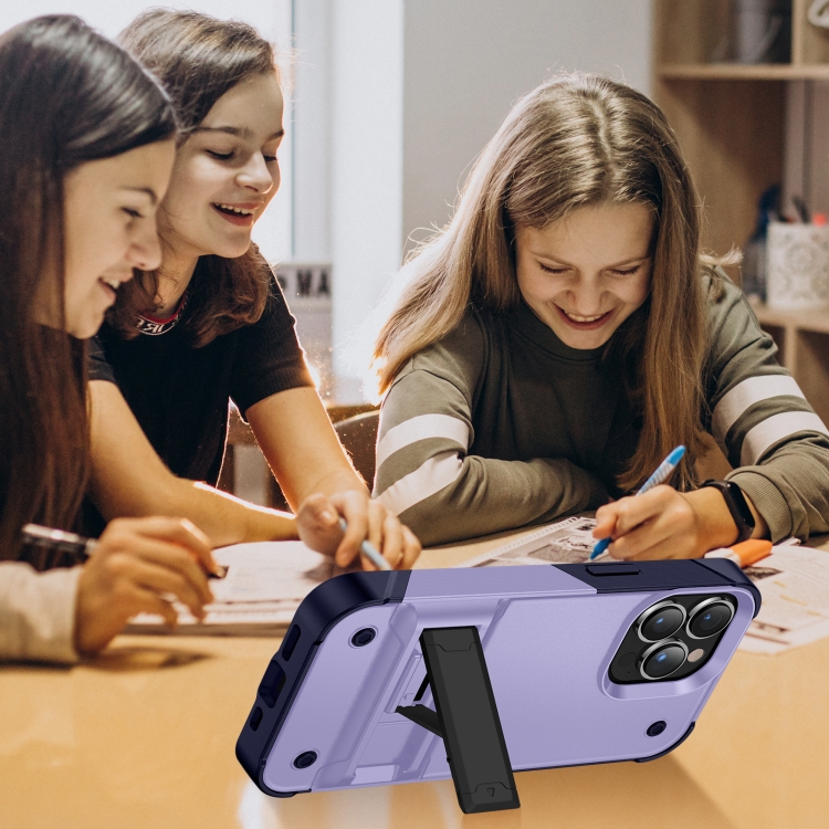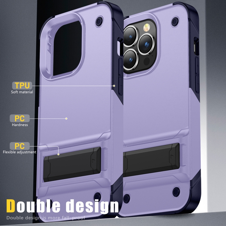 Estuche para teléfono iPhone 14 PC + TPU a prueba de golpes con soporte (Púrpura Claro + Azul Zafiro)