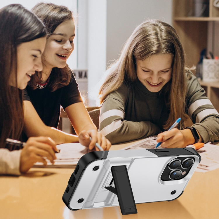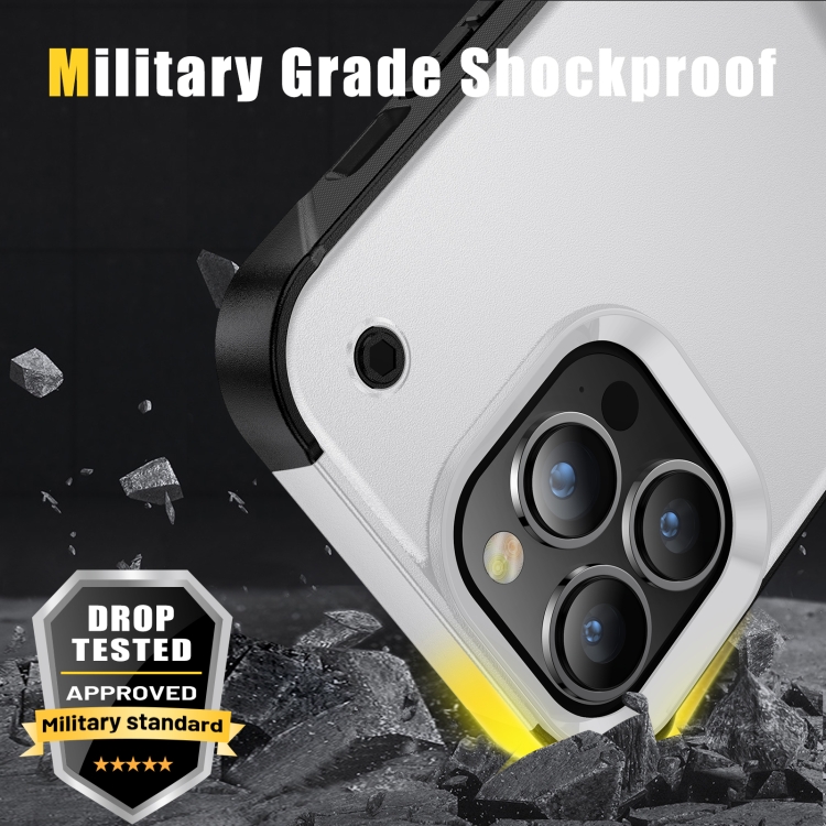 Funda para Teléfono iPhone 14 PC + TPU a Prueba de Golpes con Soporte (Blanco + Negro)
