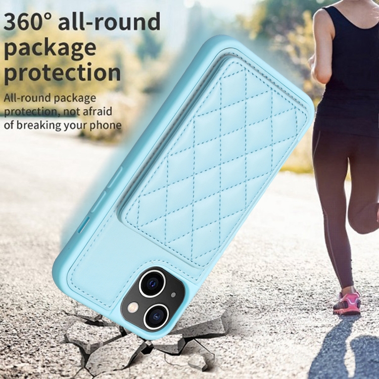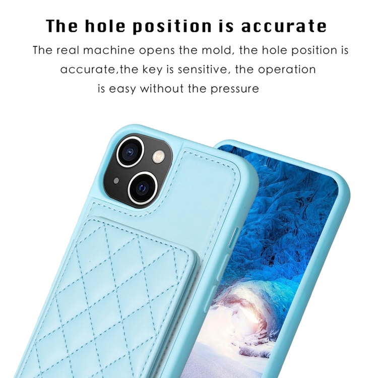 Funda para iPhone 14 Plus Bf25 Square Plaid Card Bag Holder Phone Case (Azul)
