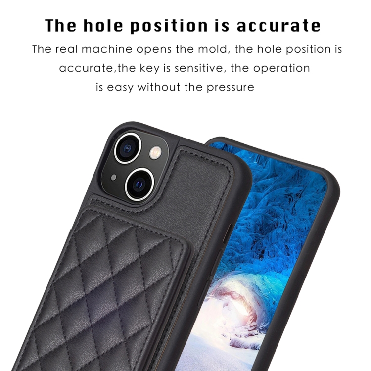 Funda para iPhone 14 Plus Bf25 Square Plaid Card Bag Holder Phone Case (Negro)