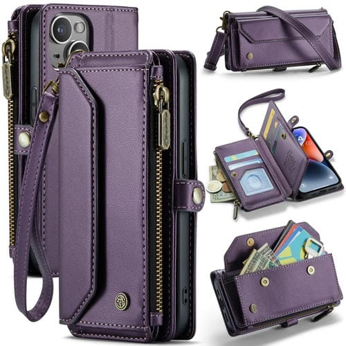 Funda para iPhone 14 Plus Caseme C36 Cartera con Ranuras para Tarjetas y Cremallera Antirrobo Rfid (Púrpura)