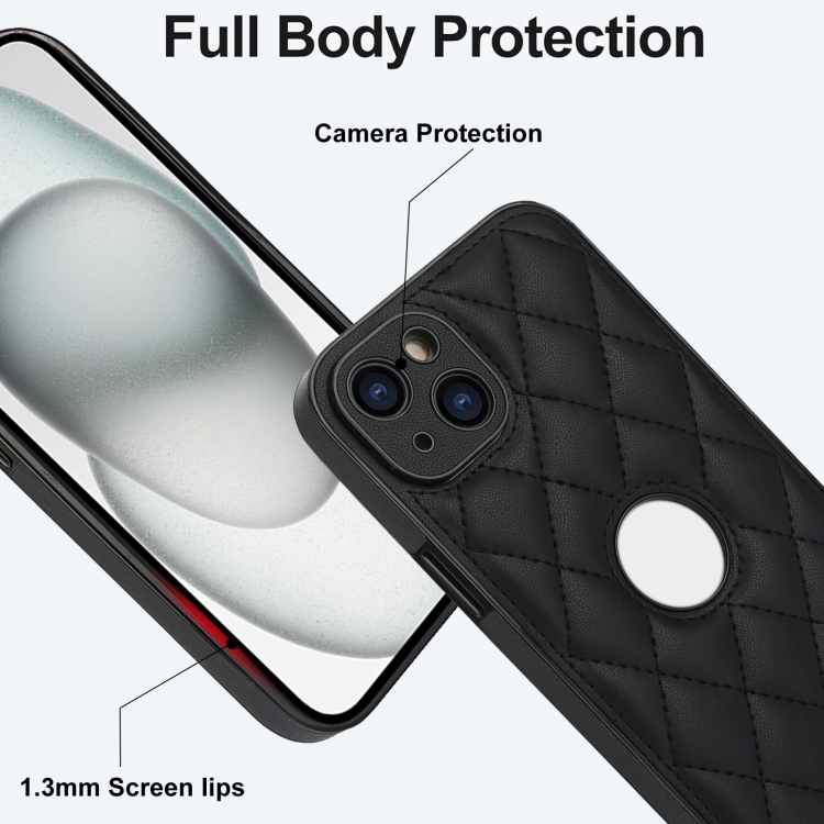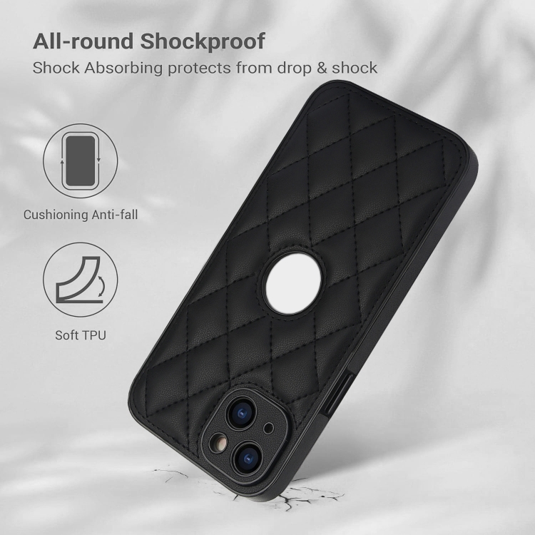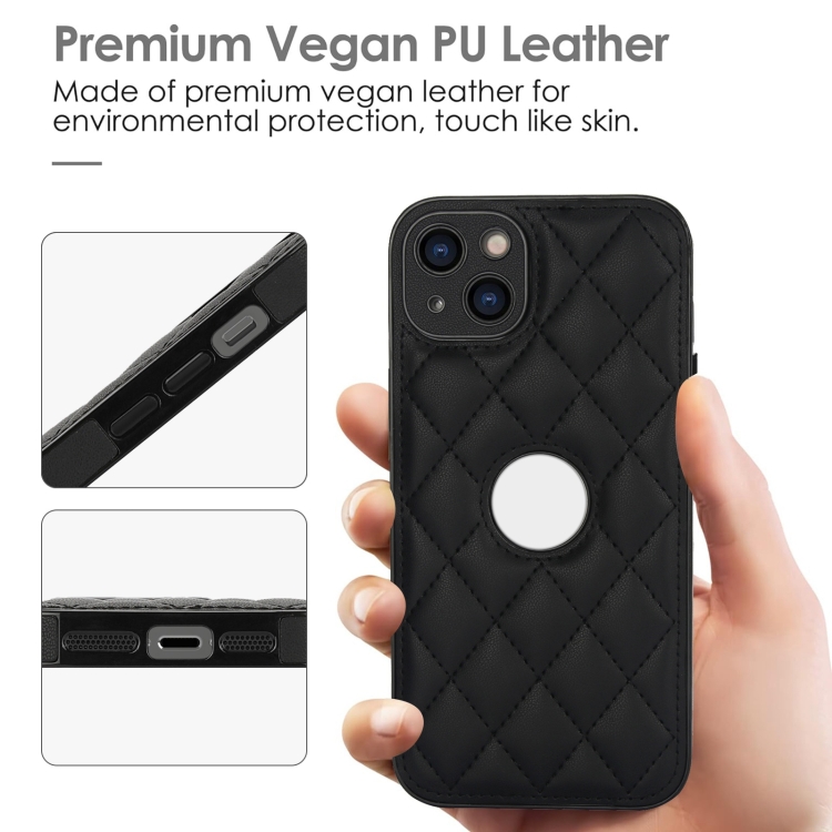 Funda para Teléfono iPhone 14 Plus Contraportada de Cuero Rómbico (Negro)