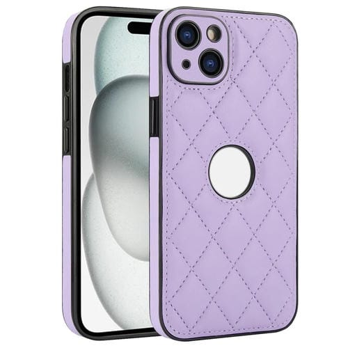Funda para Teléfono iPhone 14 Plus con Contraportada de Cuero Rómbico (Púrpura)