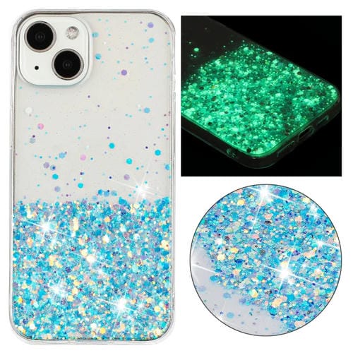 Funda para Teléfono TPU iPhone 14 Plus con Polvo de Brillo Noctilucente y Marco Transparente (Azul)
