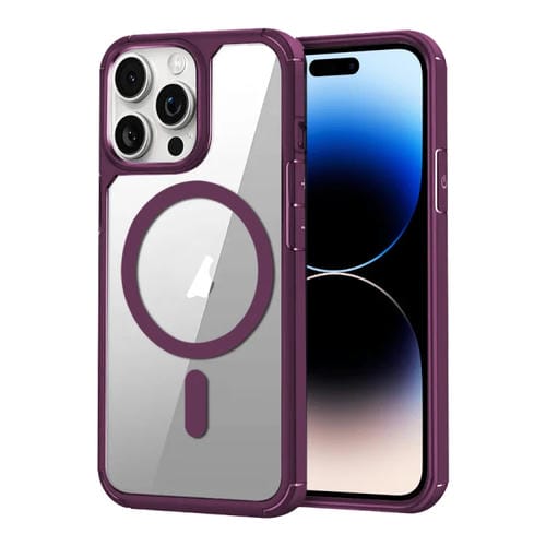 Caja de Teléfono Híbrida Acrílica de TPU para iPhone 14 Pro Magsafe (Rojo Vino)