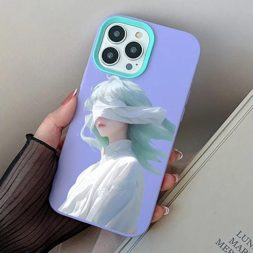 Funda híbrida para iPhone 14 Pro Max Blindfold Girl PC y TPU (Púrpura)