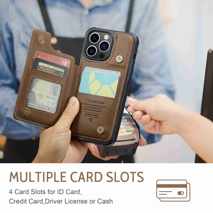 Estuche para teléfono Caseme C22 iPhone 14 Pro Max Antirrobo con Ranuras para Tarjetas Rfid (Marrón)