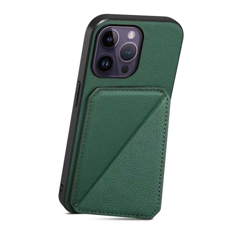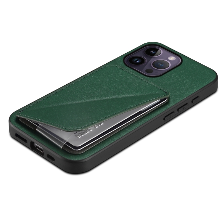 Funda para teléfono iPhone 14 Pro Max D04 con soporte y ranura para tarjeta dual (Verde)