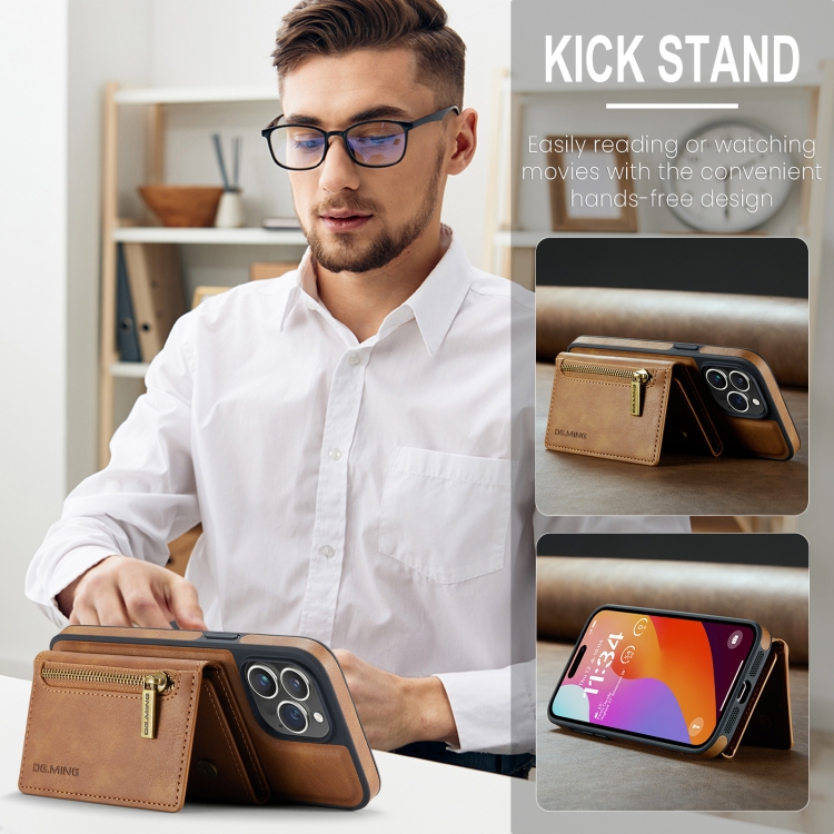 Funda para iPhone 14 Pro Max Dg.Ming M5 Series Zip RFID Cuero Desmontable Múltiples Tarjetas (Marrón)