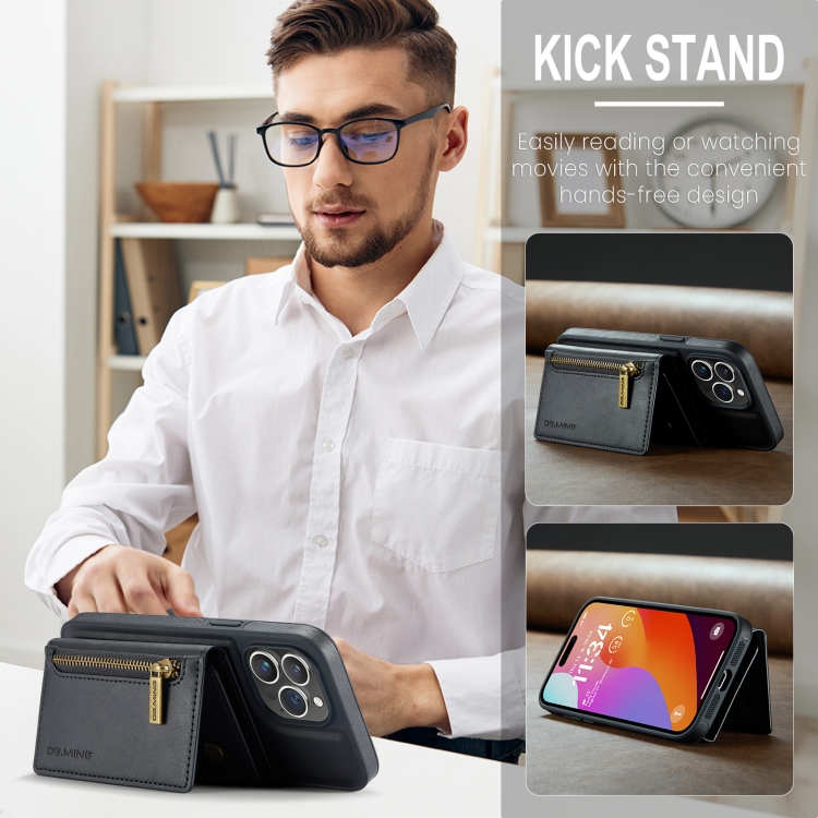 Funda para iPhone 14 Pro Max Dg.Ming M5 Series Zip RFID Cuero Desmontable Tarjetas (Negro)