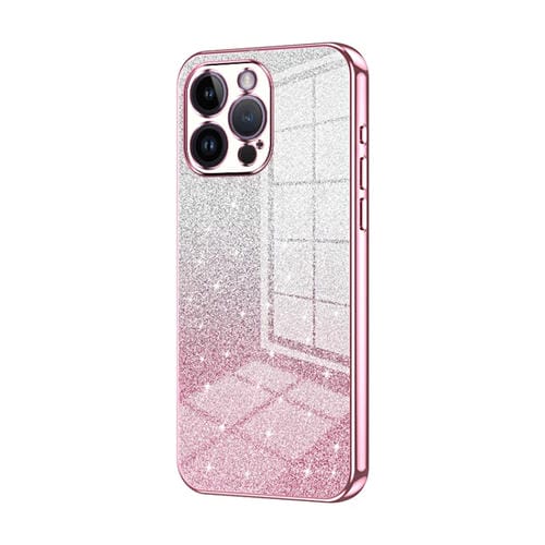 Estuche para Teléfono iPhone 14 Pro Max Galvanizado con Purpurina en Polvo Degradado (Rosa)