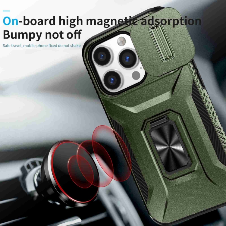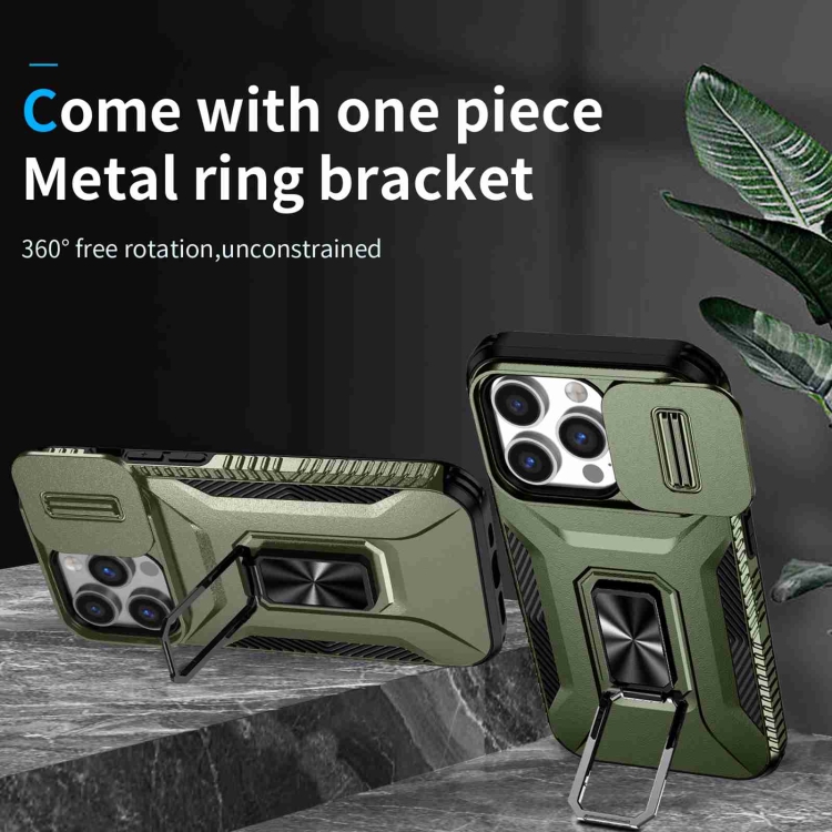 Funda para Teléfono iPhone 14 Pro Max con Soporte Deslizante para Escudo de Levas (Verde Alpino)