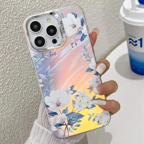 Funda para iPhone 14 Pro Max TPU Galvanoplastia Láser Flor Blanca