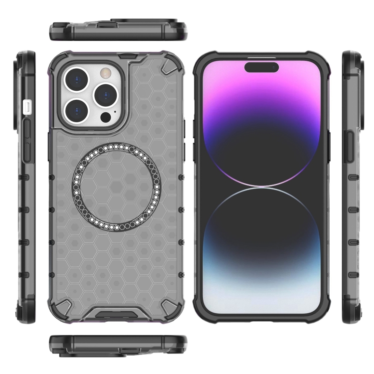 Funda para iPhone 14 Pro Max Honeycomb Magnetic Ring a Prueba de Golpes (Negro)