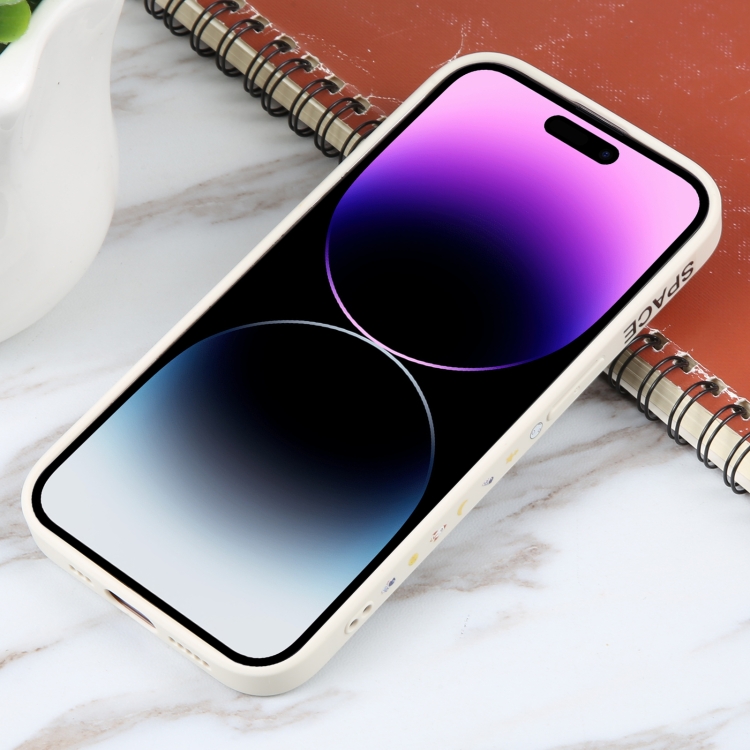 Funda de teléfono iPhone 14 Pro Max Patrón de Astronauta borde recto silicona (Blanco)